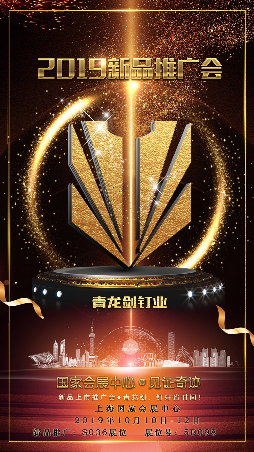 青龍劍-中國(guó)釘類領(lǐng)先品牌,參展中國(guó)國(guó)際五金展,青龍劍裝修用釘、建筑用釘、門(mén)窗緊固、家具用釘系列新品閃亮登場(chǎng),此次新品推廣會(huì)、展會(huì)同時(shí)進(jìn)行,在此誠(chéng)邀貴賓蒞臨青龍劍會(huì)場(chǎng)參觀洽談。