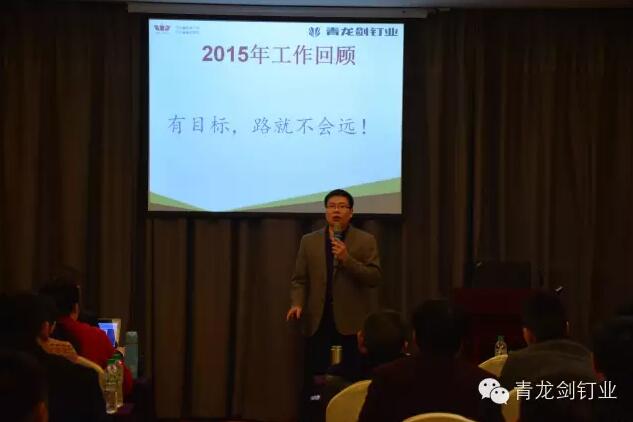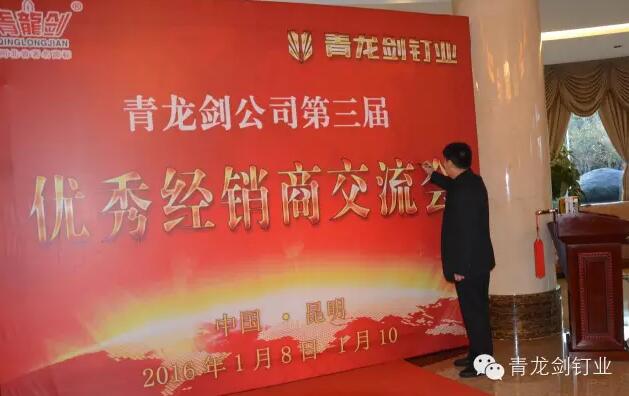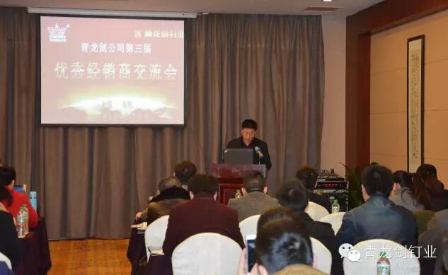 公司董事長馬志華對全國經銷商的到來表示誠摯的感謝。——“感謝各位經銷商來參加2016年度青龍劍公司第三屆優(yōu)秀經銷商交流會,歡聚一堂共同探討青龍劍釘業(yè)發(fā)展大計”。