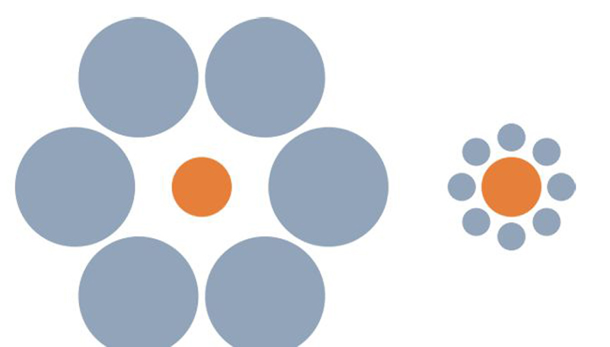 比如這幅圖,你覺得左邊和右邊中心的橙色圓圈哪個(gè)更大?