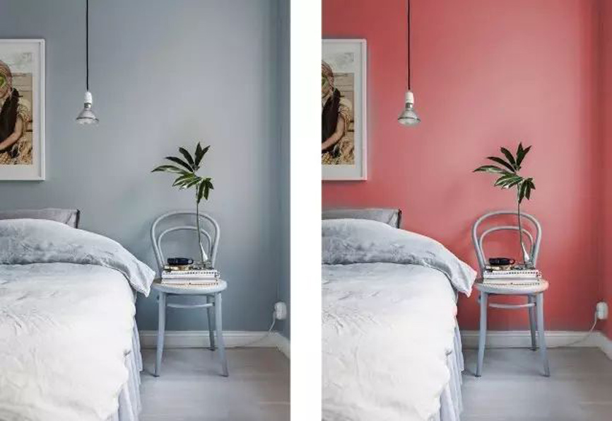 淺色有上升感,深色有下墜感。層高低的房間,可以在頂面用淺色、地面和家具用深色,強(qiáng)行拉開頂、地的視覺距離。或者地面和家具統(tǒng)一用深色,強(qiáng)行把視覺重點(diǎn)往下拉。層高高就更簡單了,在天花板涂上下墜色。其他地方保持淺色調(diào),不然整個(gè)房間都會顯得很壓抑。