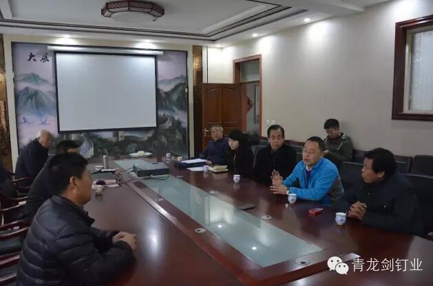 2015年11月17日,邢臺市工業經濟聯合會秘書長劉書敏一行8人在原縣人大常委會副主任、黨組副書記李丙春等領導的陪同下蒞臨青龍劍視察調研。 青龍劍釘業董事長馬志華陪同領導視察并[詳情] 2016-06-22 11:50:11